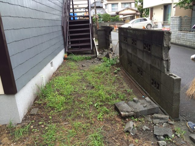 建物のリフォーム工事に伴い、敷地の前側にあったCBの塀を取り壊し、駐車場として使えるように